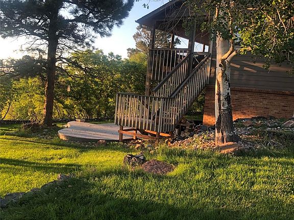 This lovely country property situated on over 4 acres with lots of privacy and an open floorplan is just a few miles from downtown Parker. Enjoy the gorgeous mountain views and sunsets from your private deck. The home has been updated and beautifully maintained. The windows, furnace, siding, and hot water tank are all newer. The remodeled white kitchen is a chefs dream-equipped with marble countertops, double ovens, a walk-in pantry, all stainless steel appliances, with plenty of storage and counter space. The master bedroom is located on the main floor and the attached bathroom has been tastefully updated. You can also enjoy sunsets while sitting near the built-in firepit on the stamped concrete pad just outside the walkout basement. The lower level has another large family room with a gas fireplace as well as 3 additional bedrooms and an updated full bathroom. This home has a great floor plan for entertaining, yet also feels like a private retreat. There is an outside work shed equipped with heat and electricity that can be converted to a home office or she/he shed. You can also enjoy your own farm fresh eggs with the 3 chickens on site. The property is fully fenced-in and has a private gate at the entrance. If you're looking for peace and quiet-this home has that. Professional photographs will be loaded June 10.