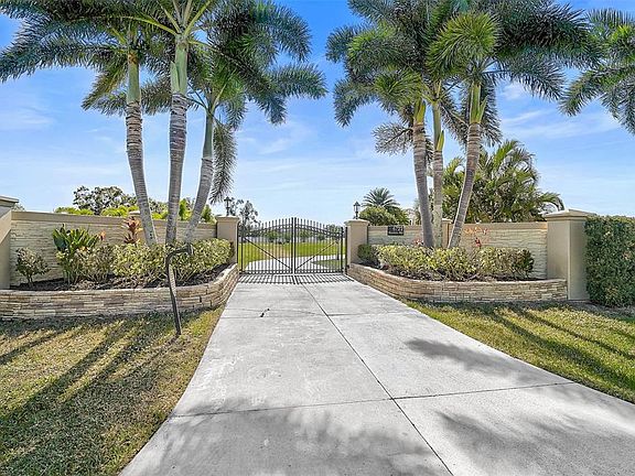 **EXQUISITE, CUSTOM-BUILT (2018) ESTATE SITUATED ON 6.80 ACRES OFFERS THE UTMOST IN LUXURY LIVING AND ENTERTAINING** Behind the Private, iron gate entrance, you will find a Magnificent Residence with its Spacious 6350sf floorplan boasting 5 En Suite Bedrooms + Office, 4-Car Garage and numerous indoor and outdoor venues for Entertaining your loved ones! Premium features abound throughout this meticulously detailed residence, including 26ft Soaring Ceilings, winding staircase, stone gas fireplace, climate-controlled wine storage room, bar area, additional Bonus Room and Bar on the second level accompanied by a charming Library and impressive Home Theater / Media Room. The striking Chef’s Kitchen entails exotic stone counters, custom hardwood cabinetry, premium appliances including Thermador and Wolf, large walk-in pantry, etc. The Elegant Primary Suite features a private seating area with serene pool views, custom walk-in closets and expansive primary bath with separate sinks, soaking tub and custom-tiled shower. Enjoy a quintessential Florida lifestyle with a Resort-style, outdoor oasis featuring a saltwater Pool/Spa with swim-up bar, adjacent casita, Outdoor Kitchen/Grilling area, lounge deck, and more! The manicured grounds entail wonderful natural highlights including a large, palm tree-lined, stocked fishing pond, gazebo with bridge over a lovely koi pond, elevated garden, basketball court, etc. Multiple outbuildings include a (1) separate Garage Apartment with Full Bath, Kitchenette, covered parking, (2) well-equipped RV garage with full electrical package, etc. Advance, Reverse Osmosis technology delivering over 4,000 gallons of pristine water daily from a 2500-gallon primary tank and two secondary 500-gallon tanks, equipped with filters, offers a complete solution for your water purification needs. LOCATION! LOCATION!! Adjacent to Twin Lakes Park with its many recreational venues and Easy Access to Nearby Interstate-75 and SR72, area Beaches including #1-rated Siesta Beach, Shopping, Downtown Sarasota cultural venues, and all that Florida’s Gulf Coast Living has to offer. **Enjoy Viewing the 3D VIRTUAL TOUR and AERIAL VIDEO**