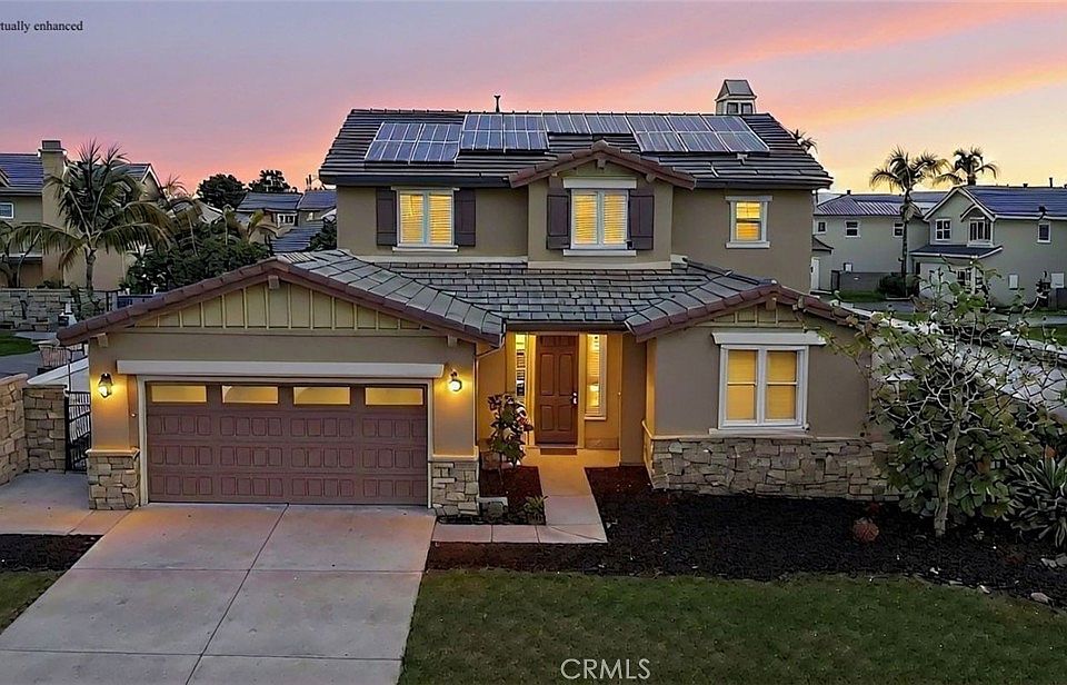 Priced to sell and move-in ready! This beautifully upgraded TURN-KEY, corner-lot home in Eastvale offers modern comfort, energy efficiency, and top-rated schools — all in one perfect package. Enjoy FULLY PAID SOLAR PANELS that provide incredible savings on your electric bills from day one. Step inside to a bright, open-concept layout with high ceilings, granite countertops, stainless steel appliances, a walk-in pantry, and a large island that’s ideal for family gatherings or entertaining friends. Elegant touches throughout include custom Plantation Shutters, recessed lighting, and thoughtful upgrades that make this home truly shine. The floor plan features a downstairs bedroom and full bath—perfect for guests or multi-generational living. Upstairs, a versatile loft with built-in office space complements the well-sized bedrooms, and the primary suite offers a spa-like retreat with dual vanities, soaking tub, and a spacious walk-in closet. Outside, unwind in your private backyard oasis, complete with a covered patio, storage shed, and a variety of mature fruit trees — Orange, Grapefruit, Cherimoya, Calamansi Lime, and Pear — creating your very own homegrown orchard. Additional highlights include a 3-car garage, whole-house water softener, and a location that truly can’t be beat — nestled in a quiet, family-friendly cul-de-sac within the highly rated Corona-Norco Unified School District, close to parks, shopping, and major freeways (15, 60, and 91), with Ontario International Airport just minutes away. This home delivers the very best of Eastvale living — stylish, smart, and ready to welcome you home.
