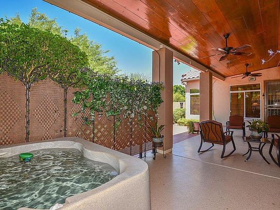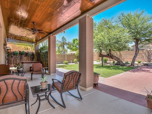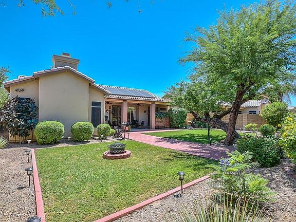 Beautiful Laguna Model in Desirable Hillcrest ranch community. Split floor plan. Fireplace in family room. Slate tile throughout and carpet in bedrooms. Newer countertops. Remodeled master shower with dual heads. Instant hot in master bathroom. 3 bedrooms and a den. French doors off the living room and master bedroom with french doors. Four security doors. Large grassy yard with covered patio and mister system. Beautifully landscaped. Two car garage with third bay. Solar lease on home, $129 per month. No APS bills last summer. 2019 average bill was 34.87 per month