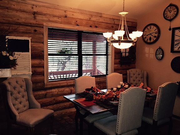Stunning custom 3BR, 2BA log home on 1.4 acres BACKING NATIONAL FOREST! Gourmet chef's kitchen with stainless- steel appliances and pantry; Large living room with wood-burning fireplace; Separate dining space between kitchen and living room; Over-sized master BR/BA w/ jetted tub and large walk-in closet; 2 additional nicely-sized bedrooms; Over-sized 2-car garage plus an additional 12' x 28' detached garage AND a vintage 14' x 16' bunkhouse/shed; Central A/C and forced-air heat plus an ETS heater; Nearly-new water heater; Home situated for maximum privacy; beautiful landscaping includes a 2-tiered water feature in a rear yard set up for entertaining. And, wait until you see the built-in barbecue-entertainment center on the covered rear deck!! There's nothing else like this on the market!!