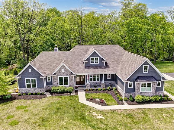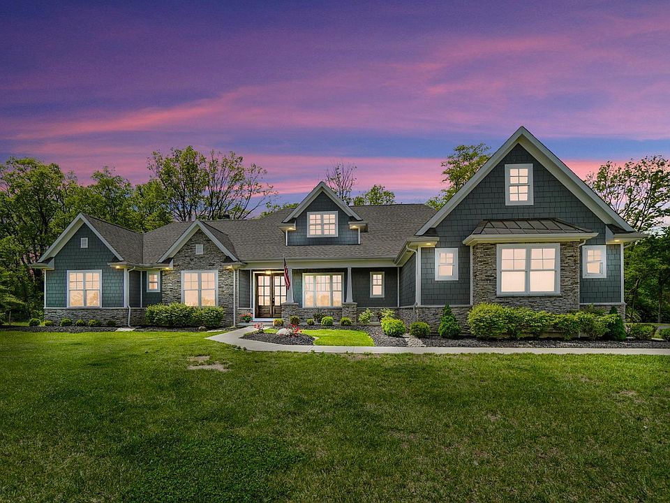 Custom craftsman style ranch on 3.85 beautiful wooded/fenced acres. Features a 48x36 pole barn and large stocked pond w/lighted fountain. Large master w/2 walk-in closets. Luxury bath w/huge shower. Open great room/gourmet kitchen area, 9ft ceilings, crown molding & 7x7 pantry. Walkout to a covered screened (floor to ceiling) porch. All appliances stay including water softener. Entire interior freshly painted & new carpet. Listing agent related to seller.