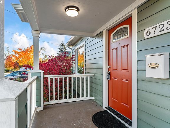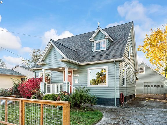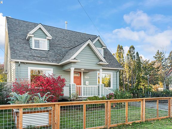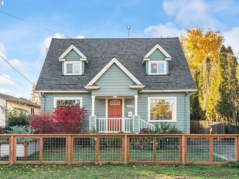 Impressive 1940s Cape Cod near Woodstock in Brentwood-Darlington! This delightful 3 bedroom, 2 bathroom home offers an inviting living room w/ gas fireplace, coved ceilings, dedicated dining room, and a spacious updated kitchen with stainless steel appliances and eating nook. The fantastic layout features one bedroom and a full bathroom on the main level, with two additional bedrooms and another bathroom upstairs. The upstairs bedrooms have dramatic vaulted ceilings, adding to the spacious feel. The tall basement provides a bonus rec room, dedicated workshop area wired with 220V, newer large capacity HE washer and gas dryer, ample storage space, and potential for your future ideas! New roof in '23, new exterior paint in '24, updated plumbing and electrical throughout, and security cameras included. Relax and entertain in the private backyard with concrete patio. Fully fenced yard features raised gardening beds and established landscaping. An oversized 2-story garage with a fixer-upper kitchen and bathroom, and second laundry setup presents incredible potential for an ADU (buyer to verify), detached office, or dream workshop. Bring your design ideas and make this versatile property your own! Nicely located 1 block from a bikers dream Portland Greenway on 68th, near Brentwood Park, and just a short distance from vibrant Woodstock retail, Mt Scott Park, grocery store, Space Monkey coffee shop, and Arleta Library Cafe! [Home Energy Score = 4. HES Report at https://rpt.greenbuildingregistry.com/hes/OR10234049]