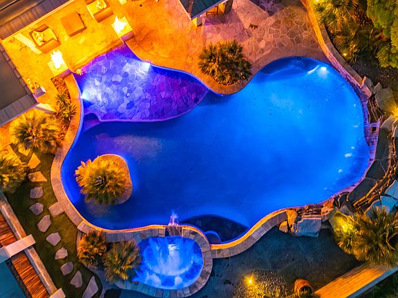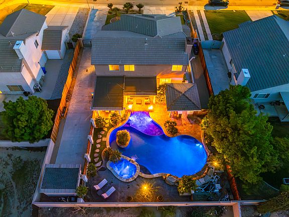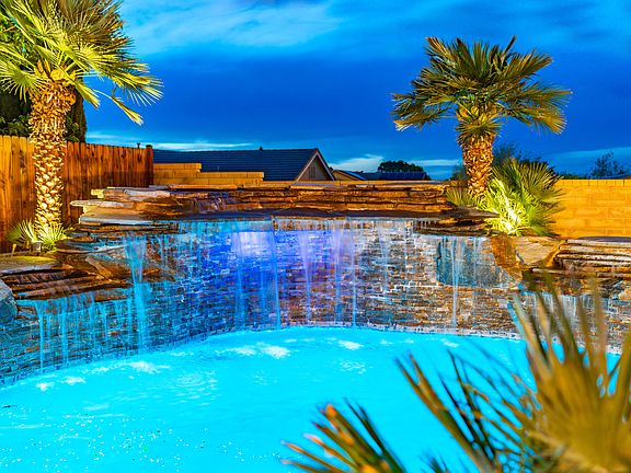 ***LIVE BEAUTIFULLY*** One-of-a-Kind Resort-Style Oasis with Over $200K in Custom Upgrades. Welcome to your dream home! This stunning 4-bedroom, 3-bathroom residence is truly a rare find — a beautifully upgraded, move-in-ready oasis designed with both luxury and comfort in mind. Nestled in a desirable neighborhood, this home combines elegant interior features with a resort-style backyard perfect for entertaining and relaxing year-round. Upon entering, you're greeted with soaring high ceilings and a spacious open layout filled with natural light. The home has been freshly updated with new interior paint throughout, brand-new flooring and carpet, and a remodeled downstairs guest bathroom that adds a modern touch to the main level. The custom-built entertainment center in the living area adds a sophisticated focal point, while the reverse osmosis water filtration system ensures fresh, clean drinking water. Upstairs, you'll find four generously sized bedrooms, including a luxurious master suite featuring custom closet shelving that maximizes storage and style. Every detail has been thoughtfully designed to enhance comfort and function throughout the home. One of the standout upgrades is the new variable-speed, high-efficiency HVAC system, which comes with a 10-year warranty, offering peace of mind and energy savings for years to come. Step outside to experience a backyard paradise like no other. Professionally landscaped both front and back, this home's outdoor space is an entertainer's dream. Enjoy a large sparkling pool with a rock waterfall and beach entrance, an oversized jetted spa, and lush palm trees that bring a tropical vibe to your private retreat. The bar area features granite counters and a built-in beer tap, while the built-in BBQ and covered patio with ample seating make it the ultimate place to host gatherings, BBQs, or simply unwind. Additional features include a spacious 3-car garage, gated RV access, and over $200,000 in custom upgrades that elevate this home to a class of its own. Whether you're looking for your forever home or the ultimate entertainment space, this property checks every box. This type of home only comes to the market once every few years. Don't miss your chance to own this incredible property a true gem where you can create lasting memories with friends and family. Schedule your private showing today!