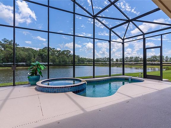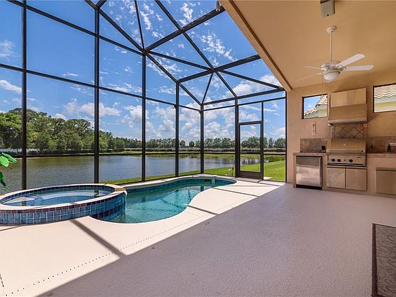 One of the top ten (or so) lake view properties in Cascades. Look across the lake and you won't see another home, but you will see a wide variety of birds, fish, and turtles. The resident osprey is magnificent as it swoops down to catch another meal. This spacious Montego model is immaculate, with granite, some engineered flooring and freshly painted, huge lanai. Just take a look at the pictures and you will instantly agree that this home offers simply spectacular views while providing a bright, cheery and cozy living space...perfect for entertaining to with its super large lanai. The built in grill area will be used constantly in this home as will the saltwater, heated relaxing pool with auto water fill and integrated jacuzzi.. Cascades is a very popular 55+ community with something for almost everyone: tennis, racquetball; horseshoes, bocce ball courts; indoor/outdoor heated pool; 25,000 sq ft clubhouse; men's card room; ladies card room; craft room, exercise facility, men's sauna; women's sauna, craft room with kiln, large ball room; kitchen, gated security with live attendants at front gate. With over a million dollars in reserves the community is very financially sound. It is a very safe community too. Almost fifty different clubs offer other forms of diversity ranging from book clubs, to poker and bridge groups. There is also a very active travel club. Your homeowner's dues will soon include the latest in high-speed internet access along with cable TV, and for a nominal cost, telephone.