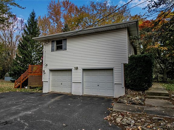 Newly listed is a 3-bedroom, 2.5-bath raised ranch nestled on nearly 7 acres of land in Starpoint School District. The upper level boasts an open floor plan with expansive windows and a sliding glass door leading to a freshly painted, multi-level deck. Savor your morning coffee with a view of the vast wooded lot. This level features all three bedrooms and 1.5 baths. The lower level is designed with a separate laundry room, family room, workshop, and a full bath. It is a full walk-out basement opening to the backyard. The convenience of a 2-car attached garage means no braving the cold to get to your car in winter. With a hot water tank installed in 2024, all appliances included, central air, and a curved driveway that eliminates the need to back out, this home is ready for its next owner to add a personal touch.