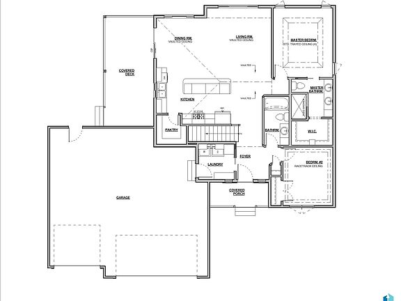 - Master Downstairs, Main Floor Laundry, Master Bath, Vaulted Ceiling(s)