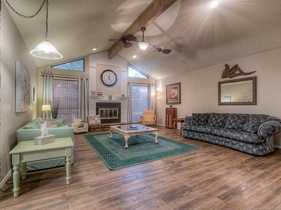 Check out this lovely home in the heart of South Tulsa. Large scale family room has vaulted ceilings & ample windows along with a lovely fireplace to anchor the room. Dining area open to the family room w/access to the shady covered patio. Wonderful retro inspired kitchen. Enjoy the cozy 2nd living area perfect for a TV or reading room!. Nice size bedrooms with large walk-in closets. Exterior is freshly painted. Garage w/ work bench area & a floored attic provides extra storage space. Such a GREAT BUY!