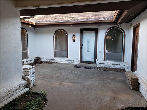 Hard to find Santa Fe style home located in Putnam City Schools area. Spacious home featuring a private courtyard, tiled entry, 3 large bedrooms, 2 bathrooms, flex room which could be a formal dining room, 2nd living room or study. Nice living room featuring a fireplace, bookshelves & ceiling fan. Spacious kitchen area with lots of counter space, dishwasher, disposal, gas range, refrigerator, lazy susan and large dining space. Master suite is very large along with 2 closets, ceiling fan & bathroom. Bedroom #2 features a ceiling fan, walk-in closet and bathroom access. Bedroom #3 is very large and also features a ceiling fan and walk-in closet. Nice tile flooring under loosely laid carpet in bedrooms. Exterior features include a spacious privacy fenced corner lot with backyard access, open patio area and attached workshop space with electricity. ***STORM SHELTER***