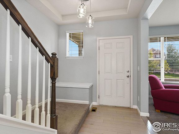 Turn-key two-story home in the desirable Timnath Ranch community offering over 3,000 SF of living space with four bedrooms plus a study. Fully open concept with a cathedral ceiling in the great room leading into the expansive kitchen with a large dining area and direct access to the backyard patio. Upper-level primary bedroom with a 5-piece bath and walk-in closet. Fully finished basement with a large fourth bedroom and massive rec room ready to customize. Gorgeous design features throughout, tray ceilings, updated lighting fixtures, custom fireplace and built-ins. Downstairs media room ready to set up as your own with two levels of floor height for theater seating. Outdoor has been professionally landscaped and offers a large backyard patio, sprinkler system and drip system for a garden. Full roof solar included, offsetting expensive electric costs. Easy access to I25, close to schools and amenities. Walking distance to the community pool!
