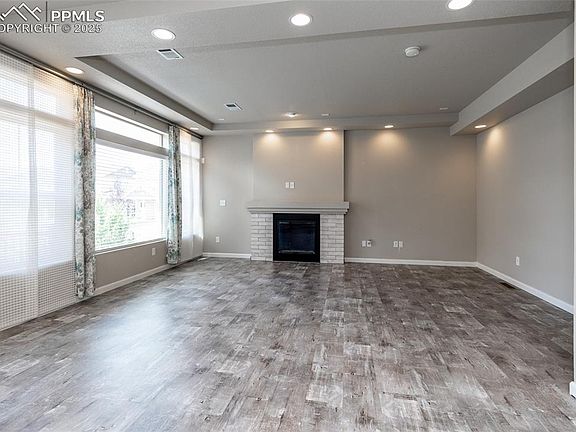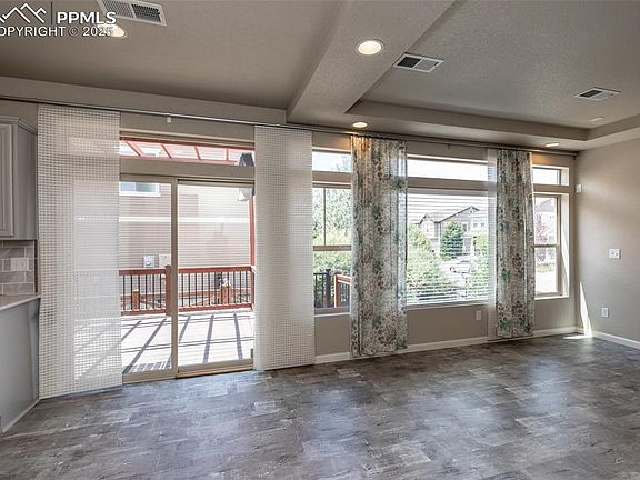 Stunning Corner Lot Home with Pikes Peak Views, A/C & Gas Fireplace! Fall in love with this beautifully updated 4-bedroom, 3.5-bathroom home located in the heart of Banning Lewis Ranch. The remodeled kitchen is a showstopper, featuring New Carrara Marmi Stonemark solid quartz countertops, a light grey subway tile backsplash, freshly painted cabinetry, stylish new pendant lights and fixtures, and a spacious center island with breakfast bar seating—ideal for entertaining, meal prep, or baking. Stainless steel appliances include a gas range, French door refrigerator with drawer freezers, and a walk-in pantry. Enjoy the open-concept layout with seamless flow from kitchen to dining to the bright, welcoming living room with gas fireplace. Durable Lifeproof scratch-resistant plank flooring in a modern stone grey tone adds both style and functionality. Step outside to your large composite deck, designed for entertaining with a gazebo-style canopy that lets you enjoy the Colorado skies in comfort—open or enclosed. The fully fenced, low-maintenance xeriscaped backyard includes a raised vegetable garden bed, a handy storage shed, and irrigation. Upstairs, you’ll find three bedrooms, two bathrooms, and a versatile loft space currently used as a home office and media room complete with a movie projector screen. The laundry room is conveniently located near the bedrooms. The finished basement includes a large family room, fourth bedroom suite, bathroom, and extra storage—making it perfect for private guest quarters or a teen suite. Additional highlights include: * Central A/C * 2-car garage * Covered front porch * Raised glass vessel sinks in bathrooms * Brand new carpeting throughout the upstairs Modern lighting upgrades throughout Just steps from Banning Lewis Ranch’s top-rated community amenities including playgrounds, parks, trails, a rec center, outdoor pool, tennis courts, and fitness center—this is Colorado living at its finest.