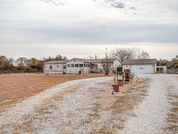 COUNTRY LIVING AT ITS FINEST! This home is ready to move in with plenty of space for all of your parking needs, big trucks, animals, toys, pool - whatever you want! The 3.75 acres are fenced, cross fenced with a dog run (air conditioned dog house!), chicken coop, workshops, oversized 2 car garage. The home features 2 living areas (one could easily be changed to a bedroom or two), stone fireplace, large open kitchen with plenty of counter space and cabinets, breakfast bar, walk in pantry and 2 living areas. The first primary ensuite bedroom features a sitting area, large jetted tub, separate shower, nice walk in closet. The second ensuite primary bedroom has a tub shower combo with walk in closet. Did you see those sunrooms? There is a large one at the front of the house as well as a large one at the back of the house. This home has so much room and storage! BONUS - the solar system will be paid at closing making this home really energy efficient. (The fridge, washer, dryer remain with the house.)