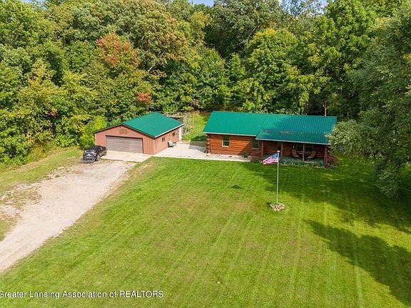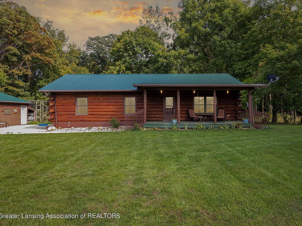 The feel of the UP, right in mid-Michigan! Tucked away in the woods of this 15 acre parcel sits an incredible 3 bedroom 2 bathroom custom built log cabin style ranch. You are set up for off-grid living with solar panels with Generac battery backup, heat pump, prime hunting and stocked pond. The kitchen has been completely updated with gorgeous wood cabinets, custom countertops, and stainless steel appliances. Every bit of the wood exterior, deck and covered front porch have all been recently stained and a new metal roof was recently installed. Currently set up as a two bedroom with main floor laundry, but move the brand new ventless combined washer/dryer to the basement and you have the third bedroom back. Along with the detached 2.5 car garage, there is a 24x48 pole barn to store all your off road toys and hunting gear. A creek runs through the backwoods but it's accessible but a large steel frame bridge that can hold a semi! St. Johns Schools. Just minutes from US-127.
