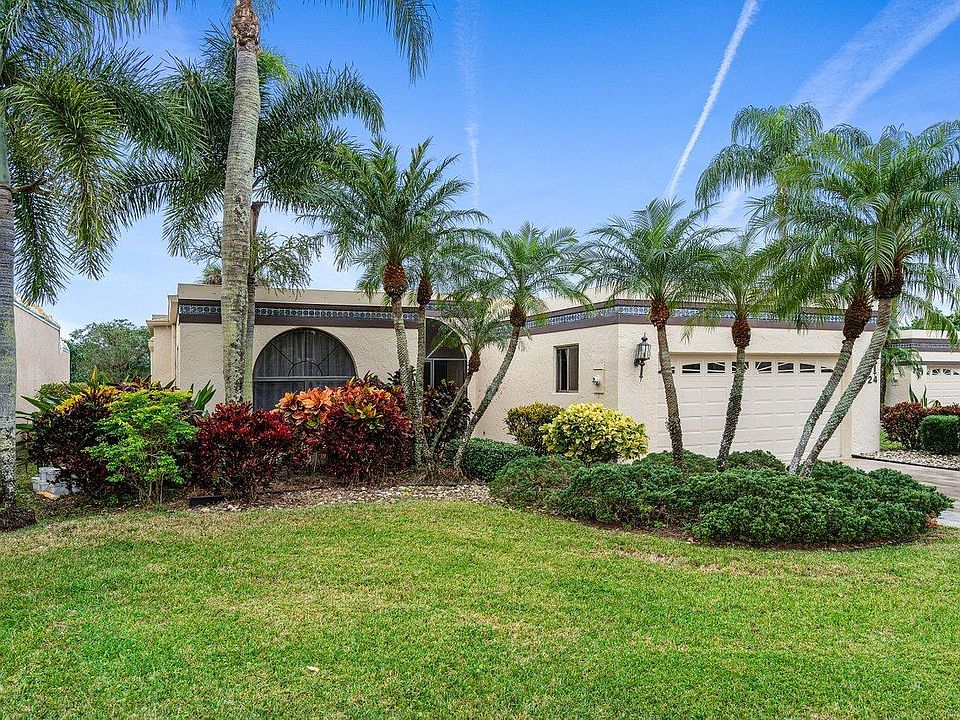 NO MANDATORY Membership in the Fountains! Lovely all ages community. This beauty has an open concept floor plan with high ceiling and plenty of natural light, glass enclosed lanai overlooking the relaxing lake view and golf course. Gorgeous Atrium area to enjoy your morning breakfast or afternoon drinks. NEW roof, NEW A/C, sleek remodeled bathrooms, tile flooring throughout. All the bedrooms are spacious and offer ample closet space, 3rd bedroom is currently used as a den, but can be easily enclosed. Large kitchen with a breakfast nook, laundry room with utility sink and storage area, 2 car garage and much more. HOA fees include the 24 hours man-gated community entrance, roof replacement, gutters, cable/high speed internet, house exterior painting, lawn care, common areas & community pool