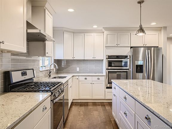 Amazing opportunity to spend every day in your own private oasis! This ranch style home is sitting on a .27-acre site, in highly coveted Cherry Knolls. A private and inviting front porch, entry way, and wide-open rooms with hardwood floors flow though this home into an impressive chef's kitchen, equipped with an oversized white quartz island and stainless-steel appliances. The main level primary suite features a custom closet system and large windows letting in plenty of natural light. The second bedroom, bathroom, and spacious laundry/mud room are conveniently located on the opposite side of the house. Adding to the charm of the main floor is an enclosed porch that adjoins the family room, perfect to watch the beautiful sunset and to enjoy stunning snowcapped mountain views. The fully finished walk-out basement, which opens up to a covered patio, is great for entertaining or relaxing with friends and family. The two extra bedrooms and one bathroom in the basement provide endless possibilities. The expansive backyard retreat offers Colorado outdoor living at its best! The house is located in a highly rated Littleton Public Schools District, on a quiet street, in an optional HOA membership community with friendly neighbors and year-round social events, and it is walking distance to The Streets of Southglenn, schools and trails. Don't miss out on this opportunity - come and see it today!