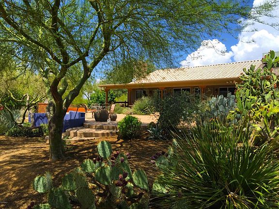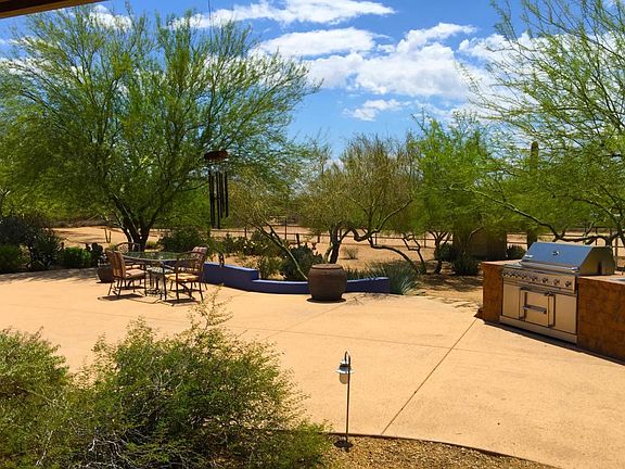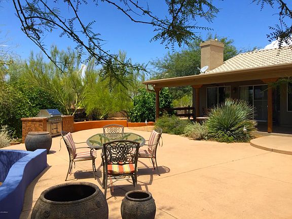 Oodles of Charm! This is a low maintenance horse property is in perfect condition! With two separate yards one for entertaining and one for the horses this 1.25 acres has space for everyone. The backyard is beautiful and amazing it comes fully equipped with BBQ grill, fire pit, spacious deck area, fruit trees and lush mature desert landscaping. A great place to entertain!Horse setup offers a nice size, 140' x 75' lighted arena. The 3 covered stalls, open & airy (12' x16'), 1 uncovered stall (24' x 16'), and a covered hay storage (16' x 15'), tack room, covered wash rack (hot & cold water). Plenty of room for parking with a side yard RV/Trailer gate. This property is right in the middle of horse country and only minutes from West World. It is located at the end of the street in a quiet