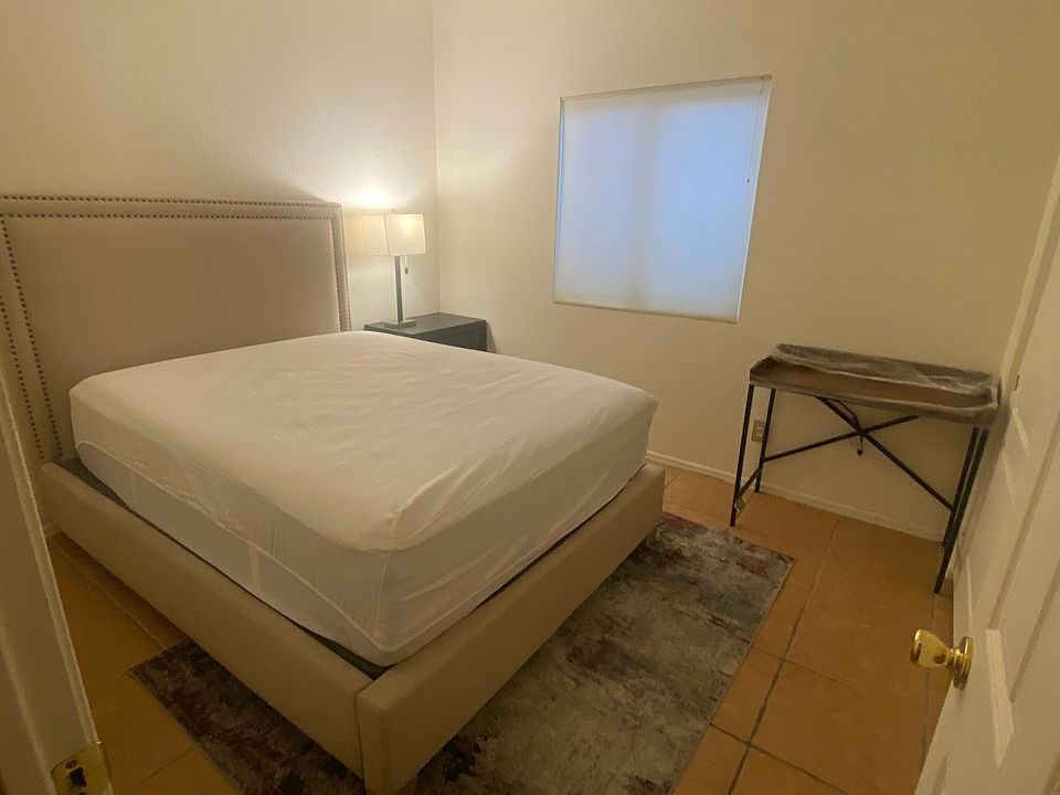 Spacious, Furnished, Private bedroom for rent with shared bathroom space in hallway to one college student or professional woman in a single level, 3 bedroom, 2 bath house. Shared laundry space with two elderly adults in house. Tiled flooring throughout entire house. Near Mesa Community College and hiking trails in Northeast Mesa. Free parking space available. Walking distance to 24 hour fitness, restaurants, & groceries stores. Near Freeway 202 and Red Mountains. Lake Saguaro is 15 minutes away. 20 minutes from Phoenix airport. No smoking allowed inside house . No drugs or heavy drinking (alcohol) in house. Prefer female college student or personnel who works at nearby Mesa Community College. Academic school year term of 9-12 months. No pets. Free street parking available on property. Responsible for payment to maintain backyard & housecleaning fee of $100 per month. Need to live clean and quiet environment. No house party.