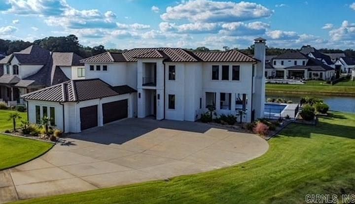 This gorgeous Mediterranean style home offers 4 bedrooms and 4 1/2 baths. Home offers all the latest amenities including tall ceilings, hardwood floors, modern fireplaces inside and out, gorgeous outdoor entertaining area, large media/library room, and gourmet kitchen. Home also includes extra landscaping and custom inground pool with a tanning ledge and water features.