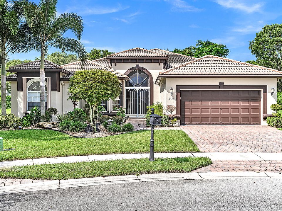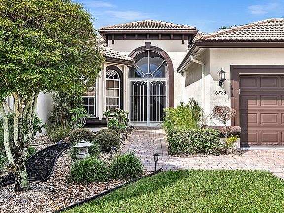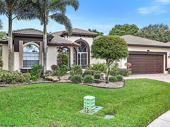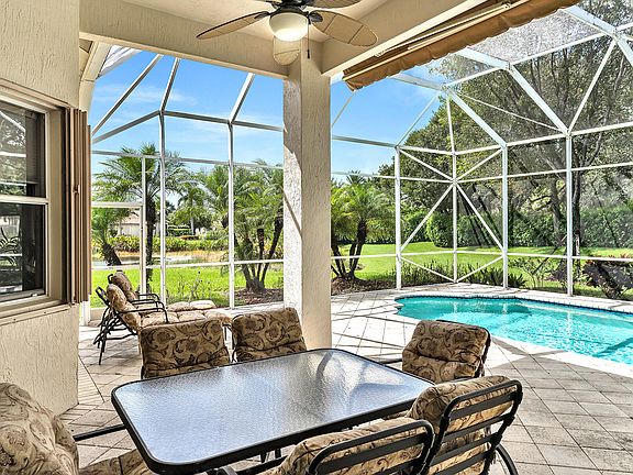 Ideally situated on oversize .27 acre cul-de-sac lot on premiere street with only 36 estate homes. The rock garden landscaping and rich 2-tone exterior paint add curb appeal. This pie shaped lot abuts a lake/preserve offering privacy & tranquil views from the back patio with full size pool (27'x13'), covered patio (17'x13) and screened paver deck area (36'x23'). The original owner has personalized this home with artistic flair. Oversize 24'' neutral porcelain tile in main living areas accented with crown and baseboard molding. Beautiful kitchen with wall oven, 42'' white cabinetry with black granite counters open to cozy breakfast nook. Formal Living room with accent wall, custom window treatments and transom molding. Gorgeous master & guest baths with granite & frameless shower. Come see