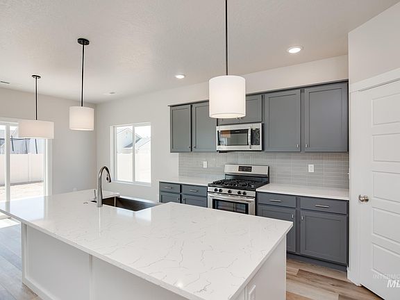 Get $35K now thru 12/31 with the Festival of Homes bonus! Embrace the comforts of a brand new home in Meridian, Idaho. Prepare yourself for modern splendor in the Milano 3250. Breeze through the 2-story vaulted entryway to discover the grandeur that awaits inside. The floor plan flows seamlessly through the main level and sweeps past the formal dining room, spacious kitchen and living room, and an additional gathering room. A main level bedroom and adjacent full bath offer a perfect guest suite or an office space. The very spacious kitchen island and countertops include stylish solid surface countertops with stainless steel appliances. Head upstairs to find a central loft flooded with natural light and 3 additional bedrooms. Double doors lead you into the primary suite, where the 18x20 foot bedroom and oversized en suite bathroom guarantee a luxurious oasis of relaxation. Photos are similar. All selections are subject to change without notice, please call to verify.