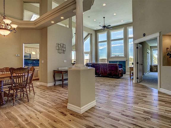 1000 SQFT of brand new hand scraped white oak hardwood floors! Custom craftsman & former show home by Morse Western Homes. Slate & travertine tile, custom maple cabinets w/pullouts, granite countertops, chef's island, eat bar, 14ft ceilings, skylights, & amazing wall of windows. Daylight basement, oversized bedrooms w/walk-in closets, surround sound & gas fireplace on both levels, basement bar w/wine fridge, wine cellar, Trex deck w/glass railings, and gas BBQ. Home backs up to greenbelt.