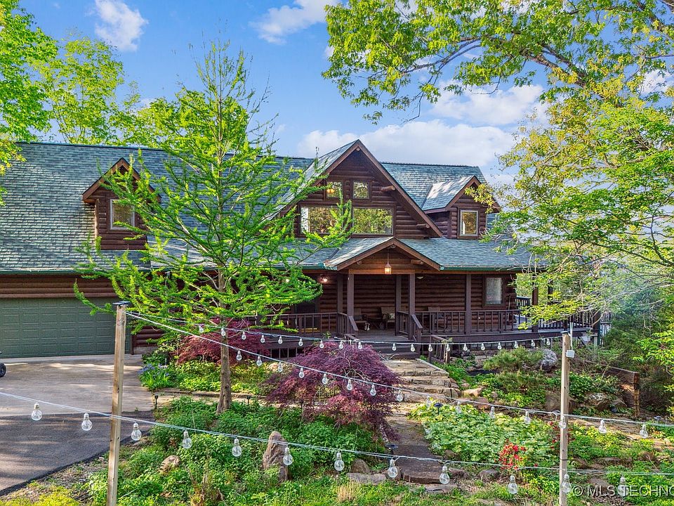 Wake up to sweeping Elk River views from this stunning log home set on 5.9 private acres with an impressive 475 feet of waterfront. Designed for relaxed lake living and relaxed entertaining, this 3-bedroom, 2-bath retreat has been thoughtfully updated throughout, with granite countertops, a beautifully remodeled primary bath, a dedicated ice machine, and fresh interior paint. Step outside and follow the lighted stairs down to the newly resurfaced swim dock, perfect for boating, swimming, and sunset gatherings. Evenings are best spent soaking in the hot tub, gathering around the fire pit under party lights, or unwinding by the pool. A charming teahouse pagoda offers a peaceful escape, while two koi ponds and over three acres of irrigated gardens create a serene, resort-like setting. The 1,300-square-foot shop/conservatory/aviary provides endless possibilities for hobbies, storage, or creative space. This is a waterfront lifestyle where every day feels like a getaway.