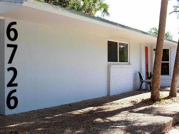 Shows like NEW construction- a must see! NEW metal roof, HWH, windows and doors, floors, AC,and NEW kitchen. With over 2,200 sq ft, this mid-century Florida Ranch boasts Quartz counters, open shelving, Shaker cabinets, subway tile, and stainless appliances in the kitchen. Spray foam insulation on walls and roof means low power bills! Barn door to mud room with a generous pantry. Great room has a fireplace, vaulted ceiling, artisan trim, French doors, exposed ductwork, LED can lights, and space for dining and beach living. Split floorplan-large master suite with sitting room, multiple closets, bathroom with double vanities, and doors to a private lanai. This sturdy, concrete block house is ready for move in and 1.1 mile from the beach means no flood insurance. Great location-check it out!