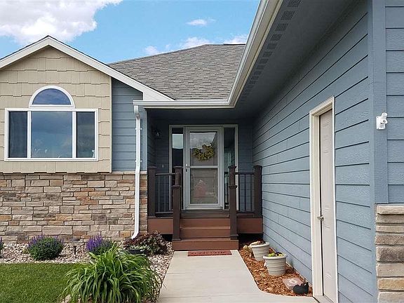 Beautiful eastside 4 bedroom ranch with great layout & light! Vaulted ceilings create open & light living room, dining & kitchen with good counter space & pantry. Over-sized window at sink brings in natural light plus a deep sill for your plants or decor! Master bedroom feels generous with ceiling fan & wooden blinds adjacent to master bath with walk-in closet, double sinks & tiled shower. Main floor laundry is off entry to large 3 stall garage with built-in cabinets. Lower level family room is cozy & inviting with wood & stone accents including built-in shelves & electric fireplace. A convenient dry bar includes a small refrigerator & storage. Enjoy the covered composite deck off the dining room, then step down to a large patio, all within a fenced yard with storage shed. Recently announced is the new Ben Reifel Middle School, just over 2 blocks away! Est completion is fall 2021. Bonus to a vibrant & growing neighborhood!