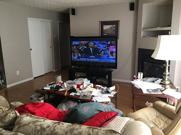 The best of Condo Living....2 bedroom, 2 bath ranch end unit. Laminate wood floors. Large great room with gas log fireplace, eat-in kitchen, large laundry room! Surround sound speakers stay. Spacious bedrooms with large closets, 2 car garage with extra parking space right next to unit. Well maintained and ready for you! Condo community has pool, playground, club house, and fitness center. Easy access to freeways, shopping, parks, golfing and more. (Seller is not the best house keeper but he has maintained this unit very well)
