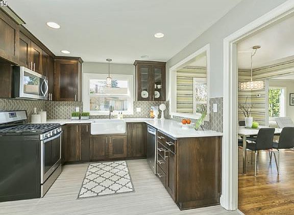 Move right in to this remodeled Mid-century modern home. 4 bed 2 bath features: Hardwood floors thru-out. Spacious living room w/ FP, formal dining room, remodeled kitchen w/ SS appliances & custom tile back splash. Master & full bath on main, 2 beds & full bath down, 1 bed up. Family room w/ wet bar down. Den w/ french doors to patio. Hi-eff furnace, vinyl windows, new ext. paint, carport, fenced yard, & new roof. This home has it all