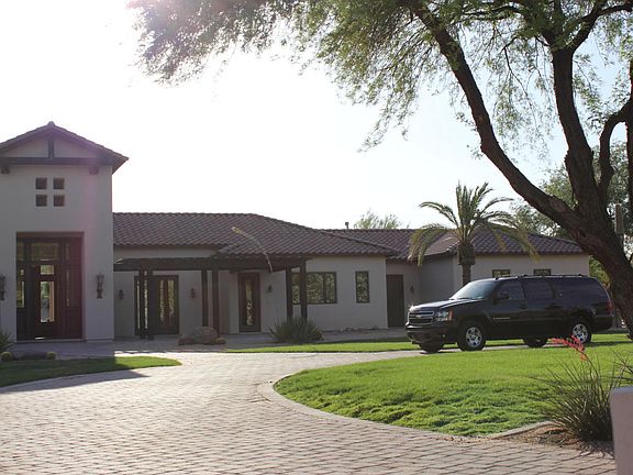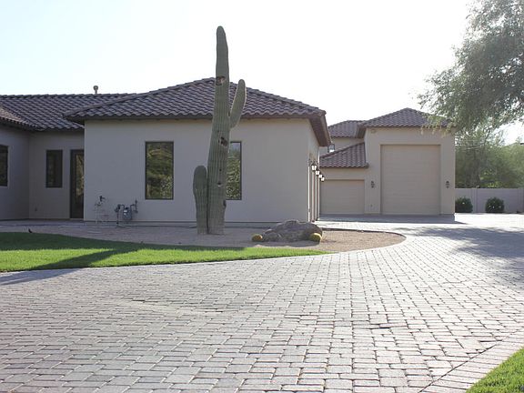 Spectacular estate nestled on 2 acres in the heart of Scottsdale. Formal entry with soaring ceilings leads to formal living and dining rooms and elegant gourmet kitchen featuring commercial grade appliances and large butlers pantry. Master wing features large bedroom with separate study and office area with his and her closets. Family wing features large family room with fireplace and 3 spacious bedrooms. The home features Travertine tile throughout with beautiful dark wood accents. Stunning grounds feature Camelback views with large grassy areas, huge heated lagoon-style pool with waterfall, gazebo, bar-b-que and firepit area for endless outdoor entertaining. This estate also features 3-car attached garage and detached RV and extra car garage with tons of storage space. A must see.