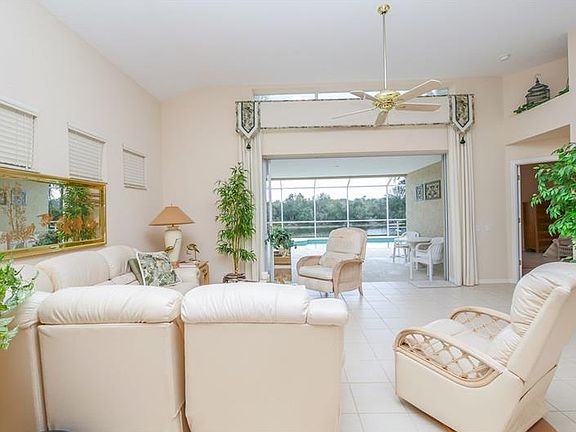 BEAUTIFUL CLARIDGE MODEL WITH UPGRADED FRONT ELEVATION. WONDERFUL ROTUNDA CEILING TREATMENT IN THE FOYER, HIGH 12 FOOT CEILING ACCENTS THE GREAT ROOM! 3 SPACIOUS BEDROOMS, LARGE OWNERS RETREAT ACCENTED BY A BAY WINDOW WITH A BEAUTIFUL LAKE VIEW! LARGE WALK IN CLOSET! LARGE LANAI WITH GAS HEATED POOL. SPECTACULAR LAKE VIEW!!!! VIRGINIA WATER IS A GROUNDS MAINTENANCE FREE NEIGHBORHOOD WITH A COMMUNITY POOL AND SPA.