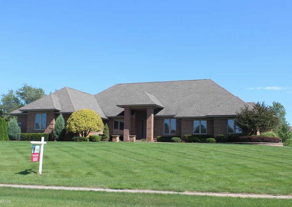 Beautiful Executive home with immediate occupancy! Home offer entry with ceramic floor & double coat closet; French door leads to den with hardwood flr; gorgeous island kitchen w/stainless steel appli included, snack bar seating, blt-in desk, island with rollout shelves, ceramic floor; breakfast nook w/ceramic floor & doorwall to 2-level brick patio; huge great room w/fireplace & stacked windows; spacious master suite w/walk-in closet & huge private bath w/ceramic shower, jetted tub, private commode, granite counter w/dbl sinks & dressing table area; family bath w/ceramic floor & tub w/ceramic surround; 3rd full bath off kitchen & laundry room area; laundry room w/ceramic floor & double closet; enormous basement prepped for 4th bath; 3 car drywalled garage; 2-level brick patio plus stamped concrete covered porch. Amazing extra deep lot, Romeo Schools.