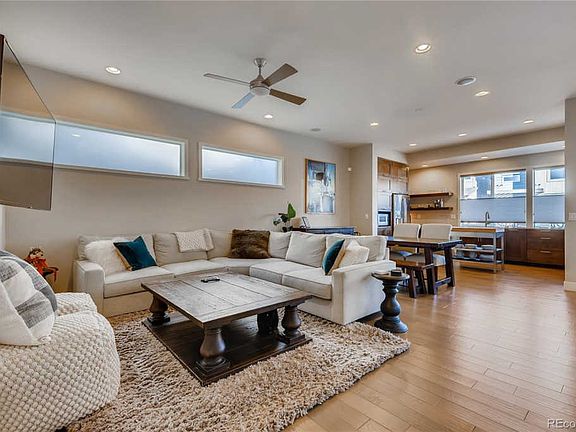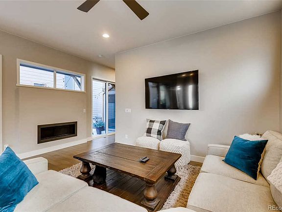 Welcome to this meticulously maintained modern Midtown home! This home offers everything you need, from the open floorplan w/ custom finishes, new Hunter Douglas blinds, sunny office to work from home, the gourmet kitchen boasts quartz counters, tile backsplash, gas range, stainless steel appliances, pantry & movable kitchen island, beautiful private patio (with extended concrete pad) located off the family room is perfect for entertaining, custom cabinets & storage off garage is great to keep you organized. Upstairs features the laundry room w/ washer & dryer, bedroom w/ private full bath & walk-in closet, the open & bright master suite features a sitting area or exercise area, Jack & Jill bath w/ granite counters, upgraded built in cabinets, & shoe racks. The fully finished basement offers a 3rd bedroom & full bath, 2 storage areas & 2nd family room or game area. Midtown is a growing community just minutes from Denver & easy access to light rail transit! The community offers a local brewery, cafe, garden area, splash pad, dog park & playground. Elementary & Montessori schools are just a few blocks away. Close to bike & walking paths.
