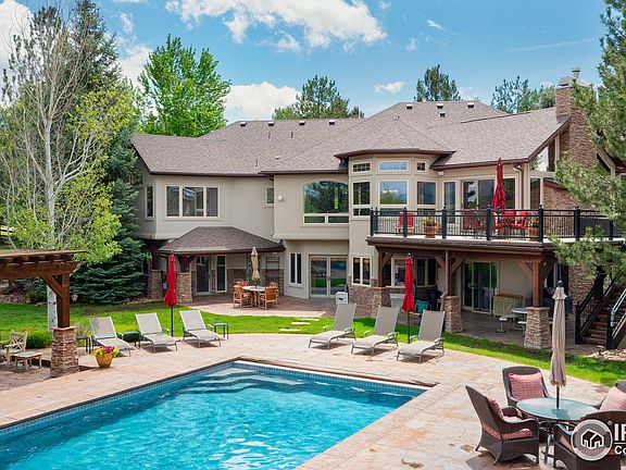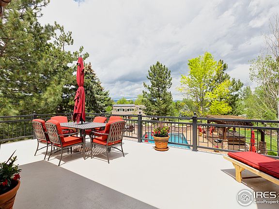 This is not a home it is a resort! This gorgeous ranch-style home with walk-out lower level is a private oasis at the end of a loop cul-de-sac that backs to the Niwot Trails & is just seconds to downtown Niwot! Short acre lot with beautiful trees, landscaping, & stunning views of the Back Range & Longs Peak from walls of windows, patios & decks. Meticulously cared for with stone, stucco, massive timber beams, and wrought iron rail details! Massive kitchen with slab granite counters & huge island, breakfast nook, vaulted family room with stone fireplace, & access to the immense deck that overlooks the over-the-top swimming pool complete with a pergola, hot tub, fire pit area, & huge patio areas for entertaining! Updated bathroom suite, refinished wood floors, carpet, some lighting & more! Includes theatre & billiards area, full wet bar kitchen, exercise room, & full guest suite. Oversized 3-car garage with 25' bay & 10' door & a huge carport! An unparalleled home and a must see!