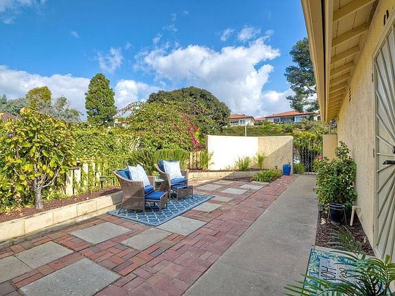 Come see this single level, twin home in the wonderful community of Altamira 1 known for its ideal location and multiple open green spaces throughout. There is an elevated view of green space and the community pool beyond, directly behind unit for your pleasure and privacy. Single loaded street with no neighbors directly across front of home which allows plenty of off-street parking. This light and bright, freshly painted home features an updated kitchen with a plethora of cabinets and a small breakfast bar for those informal meals. Formal dining room is adjacent to kitchen with slider for easy access to small patio for morning coffee or evening cocktails or come inside and cozy up to a warm fireplace in living room. The side gate leads to your front door and offers a generous private side yard that can accommodate all your entertaining and gardening needs. Bonus: rain barrels to catch our precious rain water, newer roof and owned SOLAR! So close to the beach you can enjoy sea breezes and ocean air. Great central location to beaches, parks, shopping, schools, dining, the Flower Fields, and Costco! Easy access to I5 north/south and the Coaster.