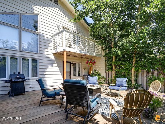 Charming townhome with Delong Lake access! Soak up the sun on your fully fenced, South facing back patio. The interior boasts a beautifully updated kitchen, including quartz countertops, refinished cabinetry, S.S. appliances, new downdraft range, LVP flooring and a breakfast bar that opens to the large dining room. Downstairs offers a spacious living room with a cozy, wood burningfireplace and vaulted ceilings that let the light in. Half-bath with granite countertops along with ample storage options and updated lighting. Upstairs you'll find the primary suite with walk-in closet, private balcony and newly remodeled bathroom. Two additional bedrooms, including one with a balcony, a full bathroom and laundry area are right down the hall. Attached two car garage with additional guest parking. Conveniently located near shopping, restaurants, schools, Kincaid Park and so much more. This is the one you've been waiting for!