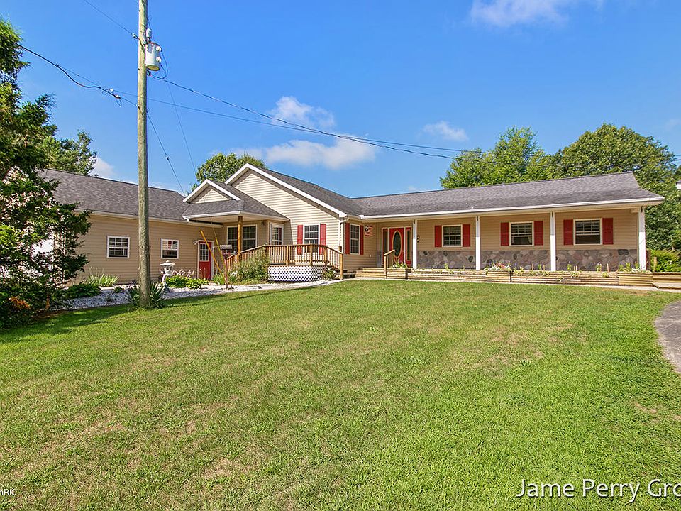 Exquisite property tucked away in privacy just on the edge of town. Generous ranch with inviting front porch invites you inside this home. Main floor boasts master suite with it's own patio door to deck area. Divine open kitchen that any gourmet would love with attached breakfast bar and dining room. Rounding out the main floor is the large living room with 12 foot patio doors overlooking the expansive back deck, pool area and back yard. Additionally another full bed and bath and den/office area that could be 4th bedroom. Lower level houses a large open rec room, full wet bar, crafting area and tons of storage. Second full living quarters with it's own kitchen and basement. 40x60 insulated pole barn with over hang all on nearly 12 acres. Way many features to mention. You MUST SEE!!