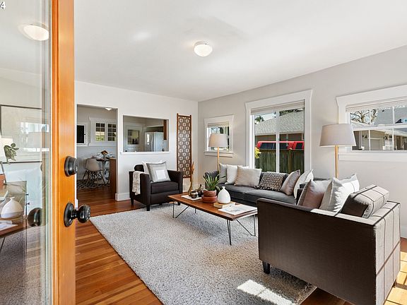 Gardners dream oasis in North Portland! Nestled in the University Park/St. John's neighborhood, this delightful 2-bedroom bungalow offers the perfect blend of comfort and convenience. With notable updates including electrical, plumbing, newer foundation and updated windows- move right in for hassle free living. As you step inside, you'll be greeted by the easy warmth of fir floors and an abundance of windows- allowing a flood natural light to fill the space. The cozy yet spacious living area provides the ideal setting for relaxation or entertaining guests with a charming slider to the front deck. The kitchen is open to the living room and offers ample counter space and tons of storage. The unfinished basement has amazing head- height and a large egress window. Tons of potential for light and bright bonus space. You'll find the laundry here- and endless possibilities. Outside, a large fully-fenced yard awaits! Complete with garden beds and a practical shed you can cultivate your green thumb this spring. Enjoy freshly picked raspberries, nurture the growing fig tree and add a chicken coop? There is space for it all! Convenience is key here too as this sweet home allows for easy access to nearby amenities. Take a leisurely stroll to New Seasons Market for your grocery needs, St. Johns Beer Porch Food Carts, Cathedral Coffee or enjoy the tranquility of McKenna Park just moments away. Or simply peek over your back fence to watch the Belmont Goat herd living the dream.Come make this cheerful North Portland gem your own!