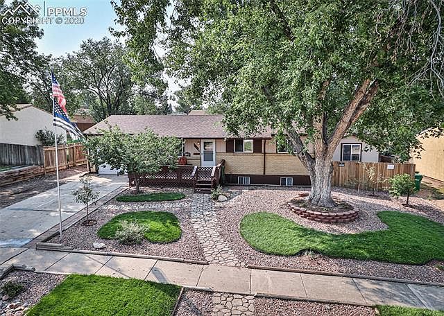 WOW! This is the place for those who love outdoor living! Main level living close to Powers with an abundance of custom details! Landscaped front yard with beautiful wood deck on the front of the home. Stay cool with a whole house fan! The kitchen features SS appliances, double oven, new dishwasher & faucet, custom cabinets and pantry, recessed lighting, custom breakfast bar, and new flooring! The living room has a custom stack timber wall, new wood laminate, and exposed wood beam. Two bedrooms were converted into one large master with 2 ceilings fans and 2 closets! A second bedroom and full bath complete the main level. The spacious family room has a custom-built sandstone gas fireplace with flagstone hearth & floor. There is a separate room in the basement, perfect for an office or craft room. A third bedroom, recently redone, is also in the basement plus a second bath! The backyard is an oasis with a 10'x20' wood deck with 12'x20' awning, gorgeous landscaping and a built-in gas/charcoal grill area with fire pit. There are two sheds in the backyard for plenty of storage. Plant your own fruit/veggies in the raised garden beds and greenhouse with irrigation! There is a detached 20'x30' garage/workshop with insulation & electric for all of your tools and hobbies! Convenient to several military bases, schools, shopping, restaurants!