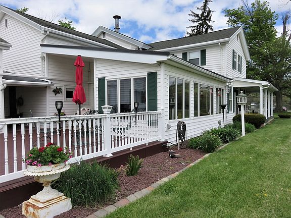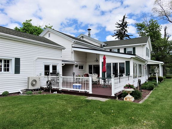 6727 SR 415, town of Bath Majestic Colonial @4448 sf with 16 rooms, a large front porch and back deck, breezeway. Attached is a 2 bay garage, large workshop, and large storage for equipment. Stunning character, boosts 4+ bedrooms - 2 full baths. Nooks & Crannies everywhere. This home used to be the Salubria Inn. Room after room of historical adventure! All 3 fireplaces work. Selling this home sitting on 1.41 acre. Additionally, buyer of home has 1st option to purchase 55 acres with pond - 22 acres of wetland from spring feed pond and the rest is crop land. Very nice home!