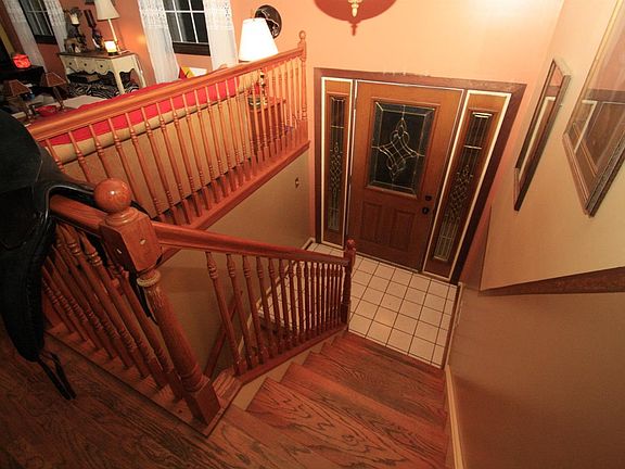 Huge 3 BR, 2 BA bi-level on 1+ private, partially-wooded acre lot. Covered front porch, remodeled kitchen w/hickory cabinets, stainless appliances & porcelain floor. Hardwood floors, Anderson windows, 2011 HVAC w/humidifier & GE breakers. LL FR w/brick WBFP. Walkout to concrete patio & shed. Some deferred maintenance items. Loads of potential!