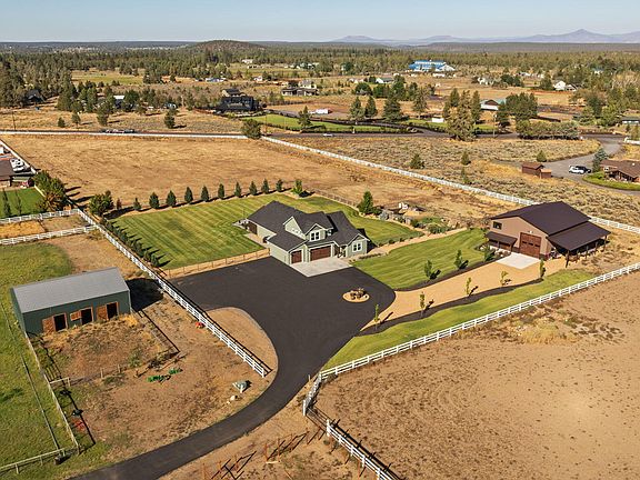 Experience elevated living in this timeless custom home set on 5+ acres with 4.8 ac deeded water rights. The vaulted plan with expansive windows showcases a light-filled Great Room with fireplace and built-ins creating an inviting space for easy living and effortless entertaining. A sliding glass door opens to an impressive covered patio with sunlit areas, fire pit, and lush green lawn. The kitchen is the home's inviting centerpiece, featuring a large island, quartz counters, custom hood, and GE Café appliances. The impeccably maintained grounds are irrigated by underground sprinklers with full-perimeter fencing plus a separate fenced and gated backyard calling you to your outdoor hobbies. An attached oversized 3-car garage complements the 40'x48' insulated and heated shop with bathroom, gym, hobby room/office, a 14' RV door, full hookups, and room to add horse stalls. Ride directly from your property down the road to miles of national forest trails. Truly a picturesque property!