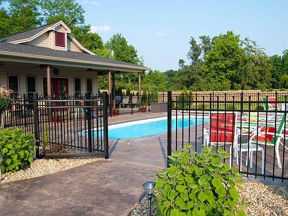 Southern charm meets timeless elegance. This custom-built 5 bedroom home is situated on 3.8 acres overlooking the tranquil countryside. This expansive estate offers both formal and casual living spaces and is ideal for multi-generational living. The resort-like backyard features a spacious covered porch, an outdoor kitchen, and a saltwater pool. The pool house comes equipped with a full kitchen and fireplace, offering an unforgettable experience for guests. The main home and pool house combined offer over 4,000 finished sqft of living space. This is a once in a lifetime opportunity in Daviess County. Don't delay, call today!