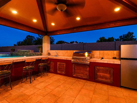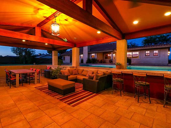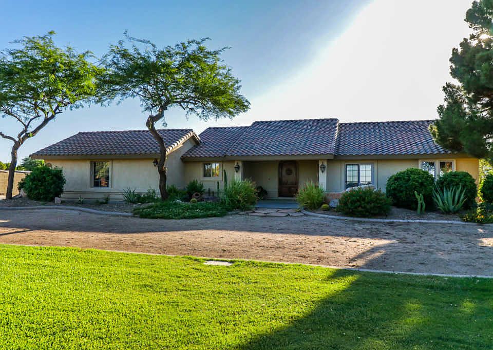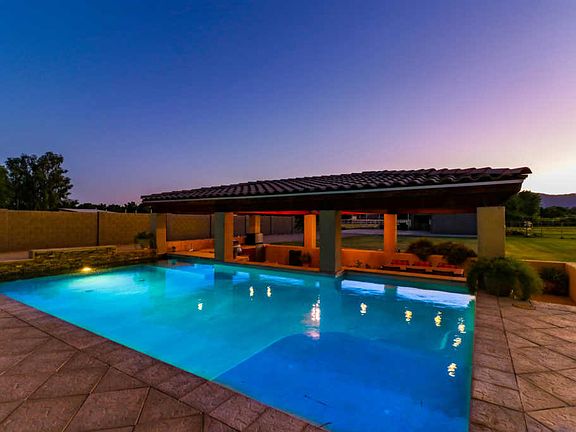 What an amazing opportunity to own 2 acres of horse property w/ mountain views! Lot includes horse corrals, 3 stall barn, 4 car garage & resort style oversized pool w/ huge sunken covered outdoor kitchen, lounge area & swim up bar! Single level home has been incredibly well cared for w/ custom touches all over. Designer kitchen features custom maple cabinetry, granite counters & stainless steel appliances. Spacious family room w/ vaulted ceilings, stone wall & wood burning fireplace. Custom alder wood doors throughout, newer roof & newer A/C!!