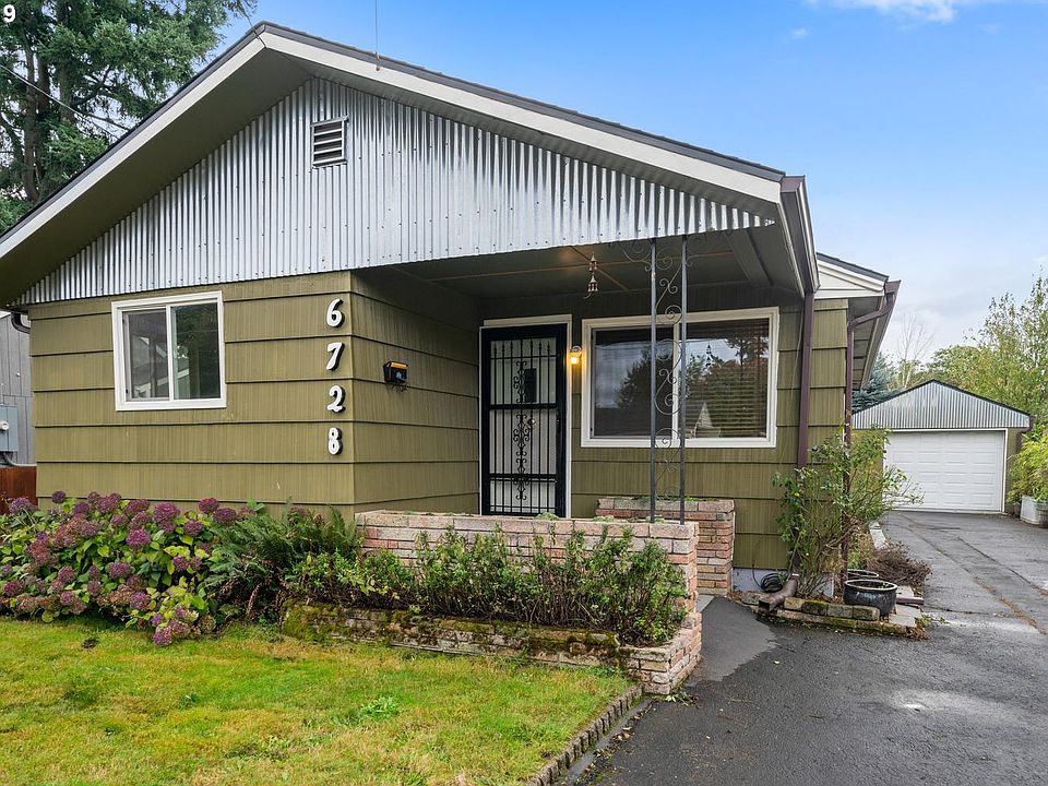 Sweet 1-level living, updated Ranch, lays out well w/3 beds, 2 baths + bonus XL laundry room. Updates include quartz-countertops in the kitchen, refinished hardwoods throughout, newer roof, vinyl windows & all new electrical service, panel & wiring. Plenty of room in the long resurfaced driveway to park your vintage trailer & cars, plus a detached garage. Enjoy a walk and/or roll to nearby Woodstock to take in the hip Portland scene. [Home Energy Score = 2. HES Report at https://rpt.greenbuildingregistry.com/hes/OR10005343]
