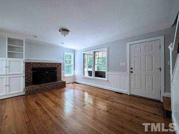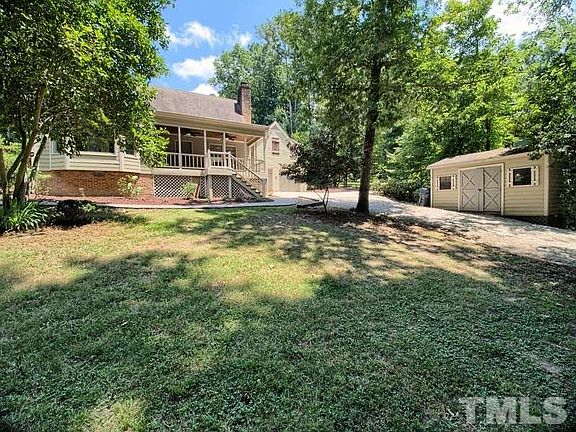 Private 1-acre oasis mere yards from Falls Lake. 1st-flr master suite has a bay window, hand-scraped hickory flooring, custom walk-in closet. Eat-in kitchen has fresh white cabinets & a pass-through window to the dining room with French doors. The finished space over the garage offers endless possibilities with a wet bar, full bath, & media room. Cathedral ceiling in family room, heart pine floors, built-ins, large storage building, sealed crawlspace, patio with fireplace & brick oven, & chicken coop.