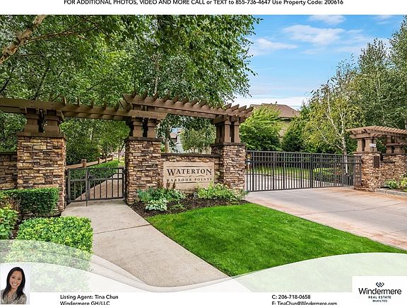 Beautiful and well-maintained Burnstead resale located in gated community at Waterton. Sited with a private backdrop of trees and partial water views, relax in this wonderful 3 bedroom master-on-main floor plan with premium finishes, soaring ceilings, large picture windows, Brazilian Cherry hardwood floors, Great room, Den and large Flex room (exercise room, arts & craft or photography studio). The Chefs Kitchen boasts all high-end GE Monogram appliances, natural gas 4-burner and griddle cooktop, new double ovens, powerful vent hood, granite slab countertops, tile backsplash and under mount cabinet lighting. Freshly painted inside and out—the interiors warm grey tones are sweetened by a sophisticated selection of new light fixtures. Enjoy a sumptuous master en-suite with 5-piece master bath, large soaking tub, heated tile floors walk-in-closet with organizational shelves, and double-sided fireplace. All bedrooms adorned with plantation shutters and have individual walk-in-closets. Newer water heater and Trex deck.The home has A/C, built-in vacuum system, tons of storage cabinets in garage, and a driveway large enough for 4 cars. All landscaped areas are professionally cared for by the HOA. Stroll along Watertons private community walking trails and park for amazing Puget Sound water and Whidbey Island views. Award winning Mukilteo Schools!