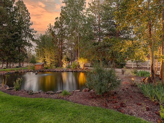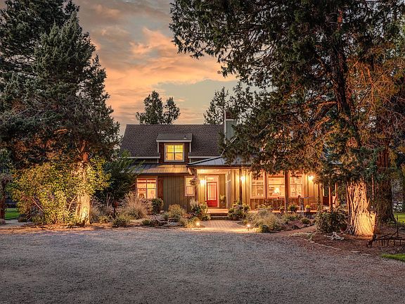 Custom Farm House style home designed for country living. Quiet neighborhood between Bend & Sisters. HORSE PROPERTY, 4 stall barn, hay storage. 60' by 70' covered riding arena with tack room. Pasture & short ride to Nat'I Forest. Great room, primary ste, laundry, study/office, Sitting room/library & 1/2 bath on 1st level 3 BR, full bath & large bonus rm. on 2nd. Custom cabinets & built-ins. Appliances are SS, Kitchen Aid & Bosch. Ceilings are a combination of 9' & Vaulted. Carpet in Primary & 2nd level all other areas are tile. Wrap around porch. Landscaped, pond, & sprinkler system on timers. 12'x16' man cave/hobby room w/heat & insulated off 2 car garage w/additional shop area & storage in the rear. Small bathroom is plumbed in the rear shop area w/carport at rear. 200 amp service in garage for all out buildings. Hugh nicely finished 24'x36' building at rear of property that could house: game room, studio, hobbies, work shop, etc.