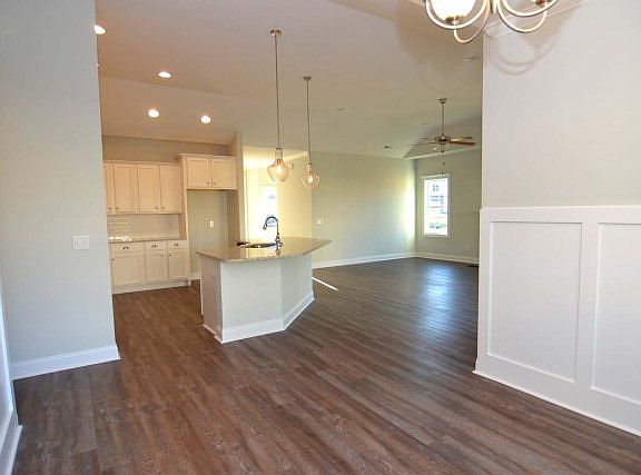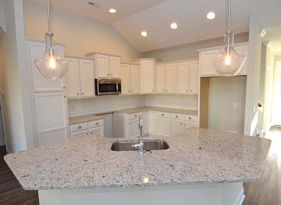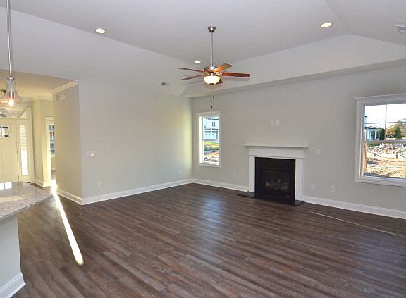 Welcome to WyndWater in desirable Hampstead. The Cape Fear, an open ranch style plan allows for abundant natural light accenting the spacious great room with vaulted ceiling, gas fireplace, and patio door leading out to the relaxing covered porch. The open kitchen includes staggered 42'' white cabinets, granite countertops, stainless appliances, kitchen island with bar area, pendant and recessed lighting, and an adjoining dining area beautifully accented with custom wainscoting. You'll find the master suite delightful with an octagon trey ceiling, large walk-in closet, garden tub with tile surround, tiled shower, and double vanity. The upstairs FROG is complete with a full bath and is excellent as guest quarters or teen space. Additional features include luxury vinyl plank, carpet, and